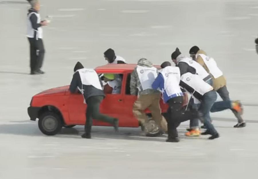 Primeiro torneio de curling com carros velhos