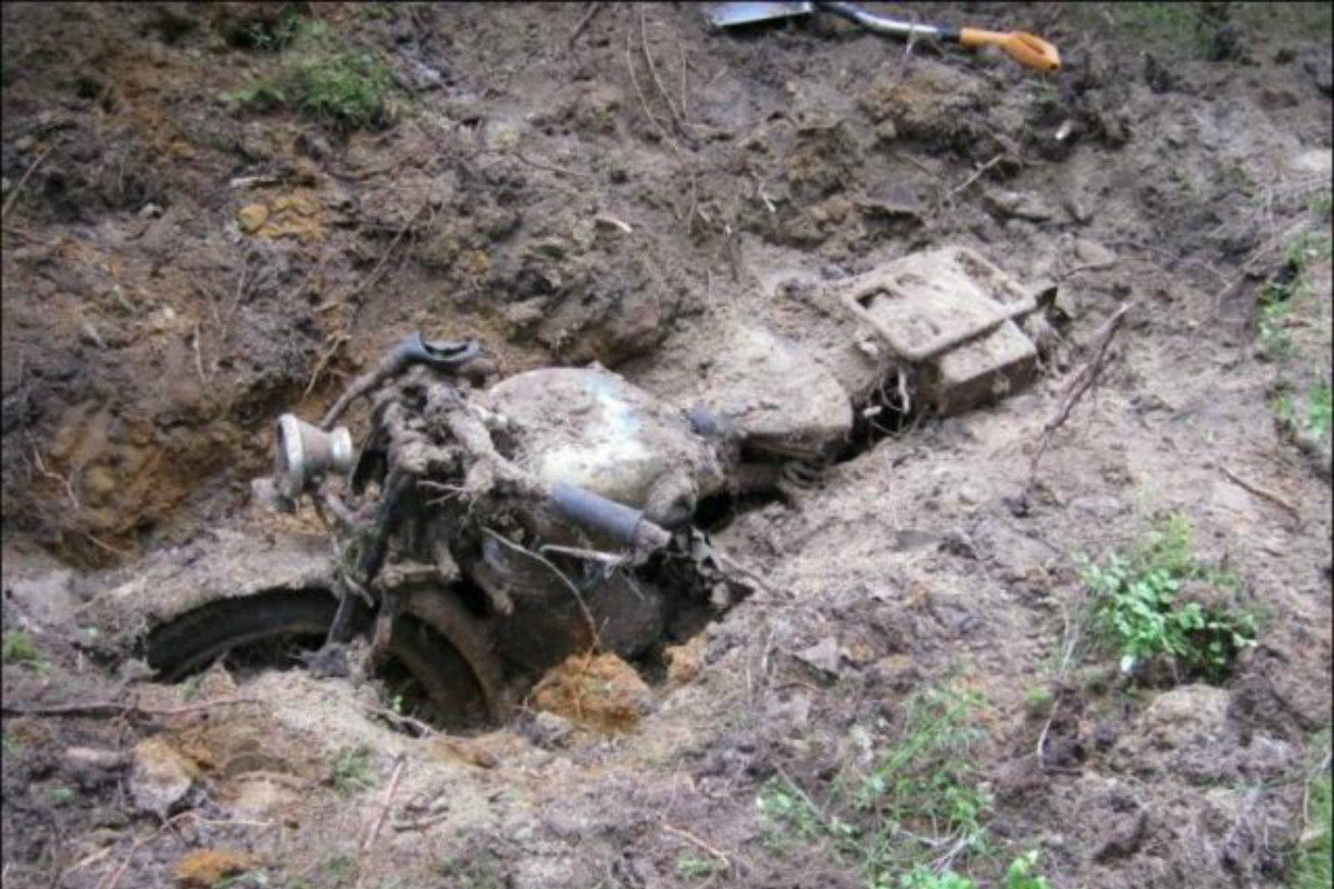 Moto rara do tempo da II Guerra Mundial encontrada debaixo de terra