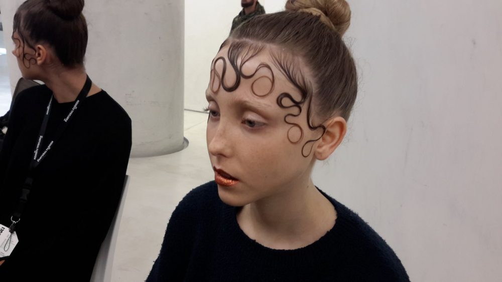 Da maquilhagem destacamos os lábios metalizados.