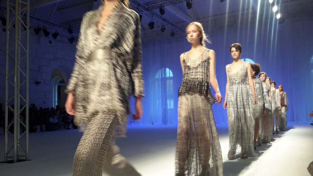 Acabou o desfile com muitas texturas e cores.