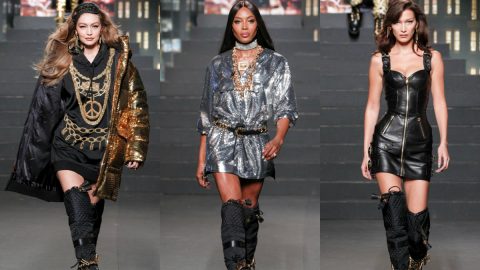 Irmãos Hadid e Naomi Campbell na passerelle da Moschino x H&M