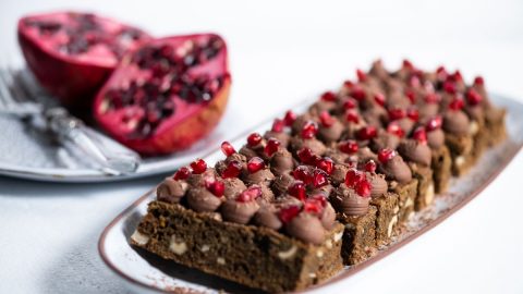 Bolo de chocolate e tâmaras com queijo de azeitão