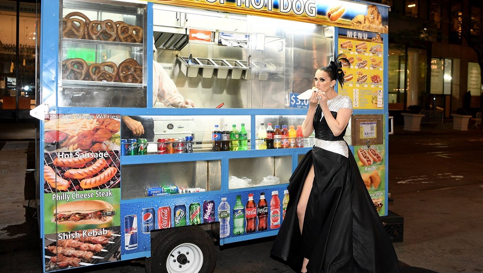 Celine Dion, um cachorro quente e um Versace