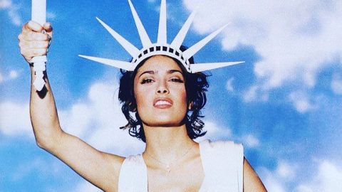Salma Hayek veste-se de Estátua da Liberdade para celebrar vitória de...