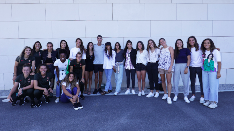 Seleção feminina de futebol e CR7 juntos antes da partida para...
