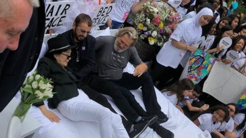 Yoko Ono na ‘cama da paz’ com Ringo Starr e Jeff...