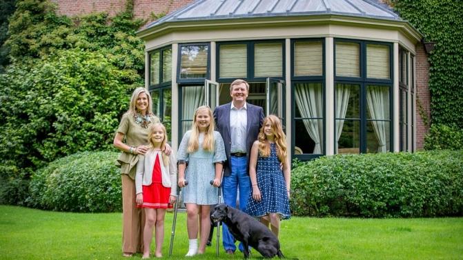 Realizada nos jardins da residência da família real holandesa, em Wassenaar, a sessão fotográfica contou também com a presença das três filhas dos reis da Holanda, Amalia, 12 anos, Alexia, 11, e Ariane, nove. Sem esquecer do animal de estimação da família, o cão Skipper.